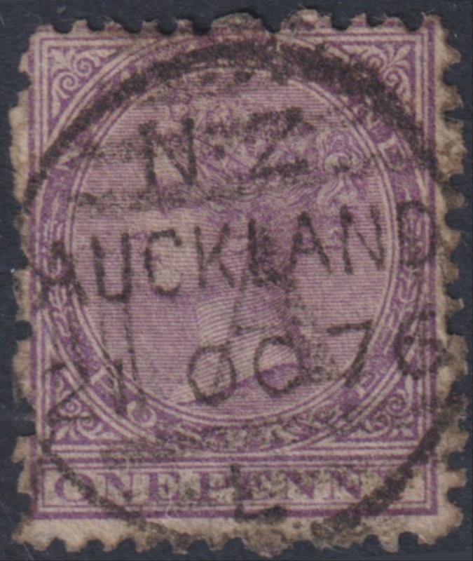1875 1d FSF deep dull lilac, p12½, large star wmk, A-class "Auckland 21 OC 76" cds. Sound but grubby appearance. CP C1d. Cat