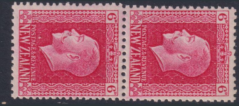 1915 6d GV carmine-pink vert 2 perf pair. CP K8c(2). Cat $275. Upper stamp mint, lower MUH. (Image)