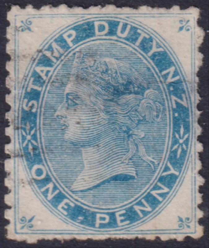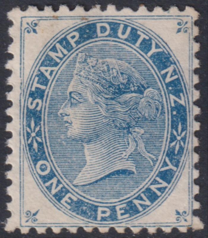 1882 1d Stamp Duty blue, light indistinct horiz oval obliterator, small thin. CP Z1b. Cat $100. (Image)