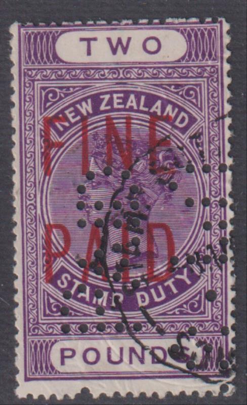 1922-33 £2 QVLT "FINE PAID", cds cancel, punched. Kiwi R83. Cat $1250. (Image)