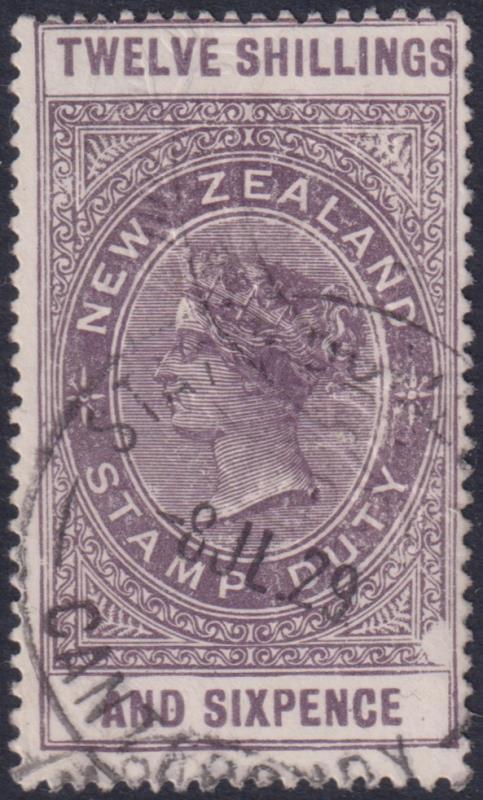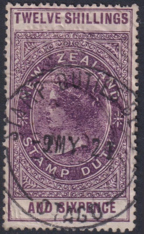 1924 12/6d QVLT, Jones paper, p14½ x 14. Fine 9 MY 24 Otago Stamp Duties cds. Embossed, not punched. Kiwi R461J. cat