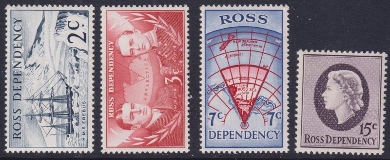 Ross Dep 1967 Picts set in blocks of 4 (3c is plate block). Jury cat $400. MUH.