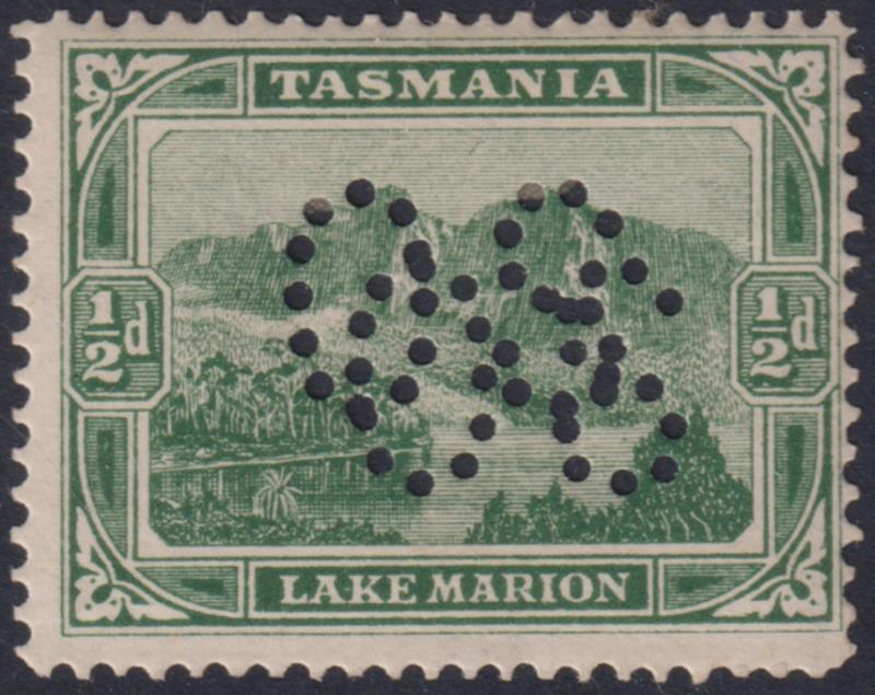 Tasmania 1907 ½d Pictorial double "OS" ovpt, p12½, litho printing. Not catalogued (incl BW). Mint. (Image)