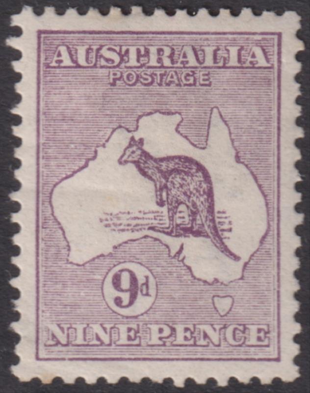 1913 9d Roo violet, Die II, broad crown over A wmk. SG 10. Cat £110. Mint. (Image)
