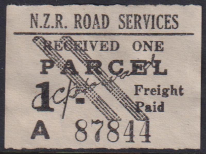 c1960s? 1/- NZR Road Services "Freight Paid" numbered parcel label (black). Rouletted top & bottom. Apparent m/s "a c