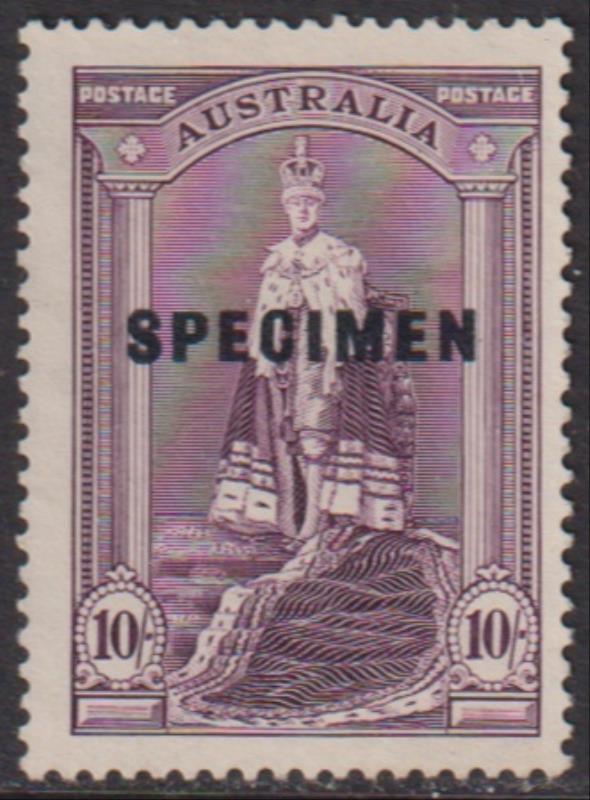 1937 10/- GVI Robes, SPECIMEN ovpt. SG 177s. Cat £35. Unused no gum. (Image)