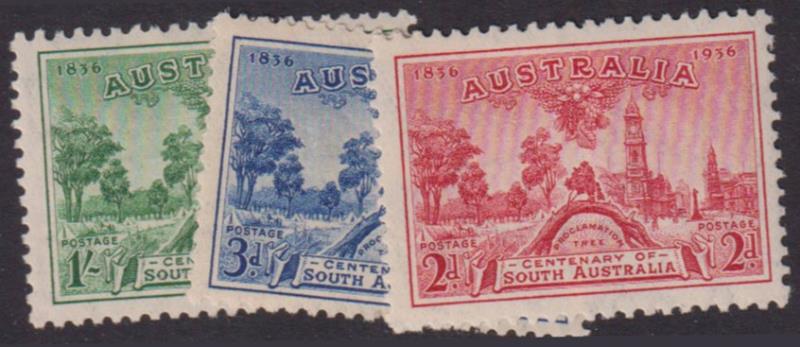 1938 South Australia Centenary set of 3. SG 161-3. Cat £35. VLH mint. (Image)