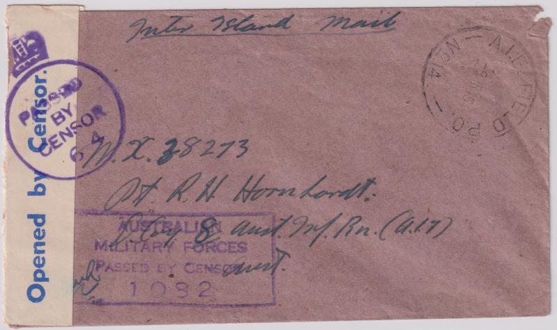 fine boxed AMF censor 3630 h/s (violet) & AAPS regn h/s (violet). D/s used at Port Moresby Jan-April 1945. To Tattersall's in Ho