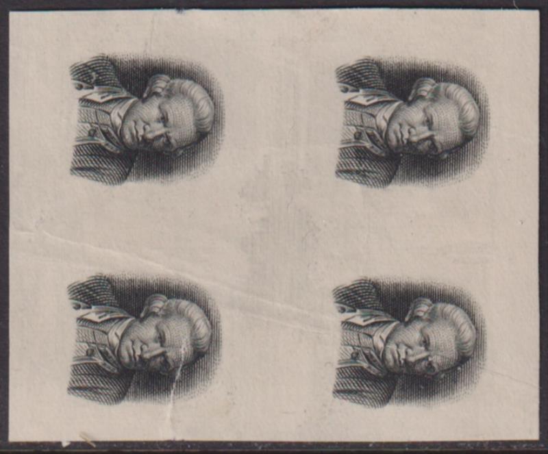 Cook Isl 1920 (1½d) Captain Cook imperf central plate proof block of 4, in black. Creasing affects all 4 stamps & appearance