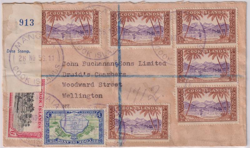Cook Isl 1956 "MANGAIA/COOK ISLANDS" 33 mm J-type cds, 5 fair-fine strikes 28 No 56 on 6d, 3d & 6 x ½d 1949 Pictorials on good