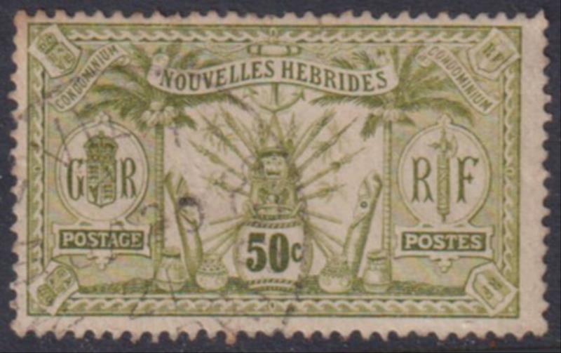 2683 imageNew Hebrides (French) 1913 50c. SG F28. Cat £42. FU. (Image)