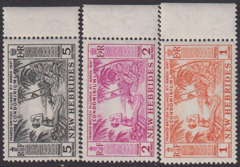 2690 * imageNew Hebrides 1957 1Fr, 2Fr & 5Fr. SG 92-94. Cat £16+. MUH. (Image)