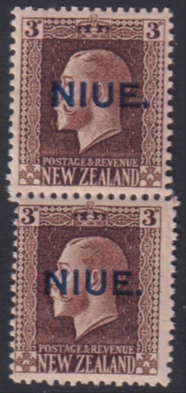 2694 * imageNiue 1917 3d GV recess 2 perf pair, "NIUE" ovpt only. SG 29b. Cat £24 as mint. MUH. (Image)