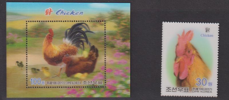 Birds (Hens): North Korea 2017 set + m/s. MUH. (Image)