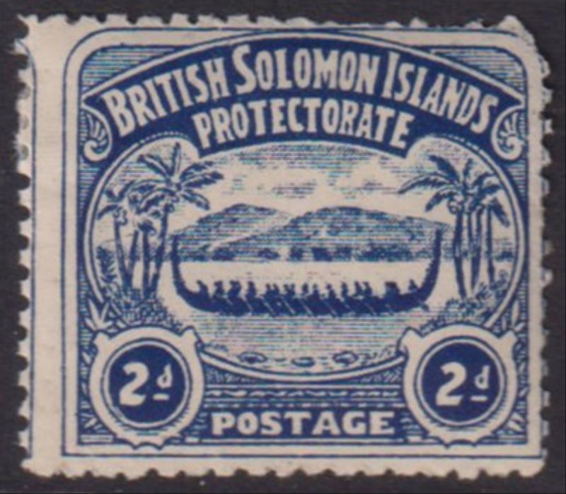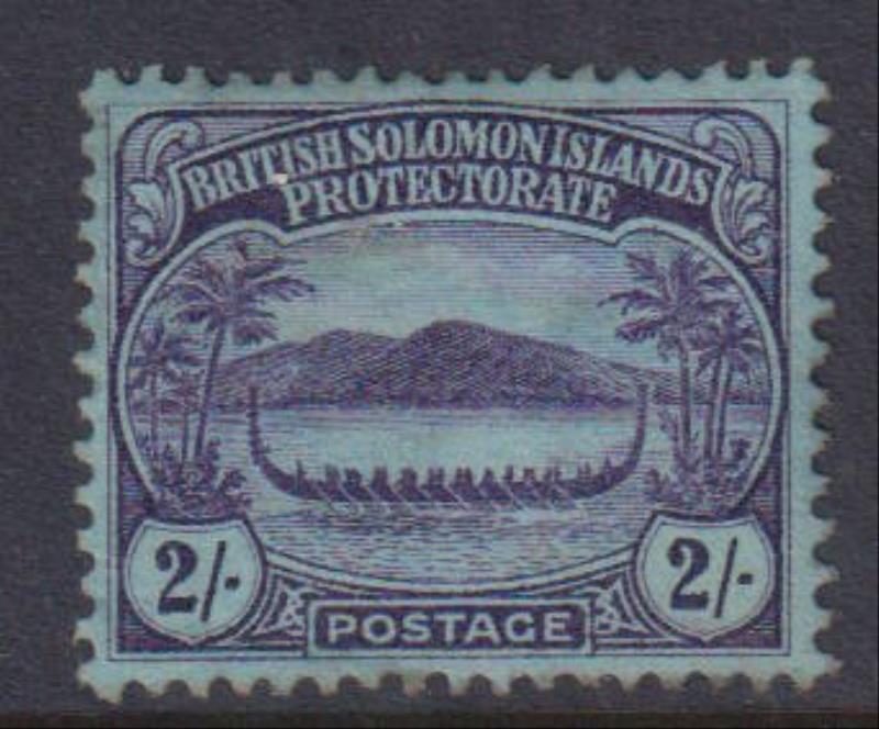 2836 M imageSolomon Isl 1908 2/- Canoe, slight gum disturbance. SG 15. Cat £50. Mint. (Image)