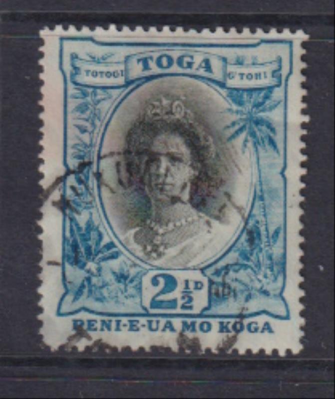 Tonga 1921 2½d Queen Salote black & blue, tortoises wmk. SG 58. Cat £48. FU. (Image)