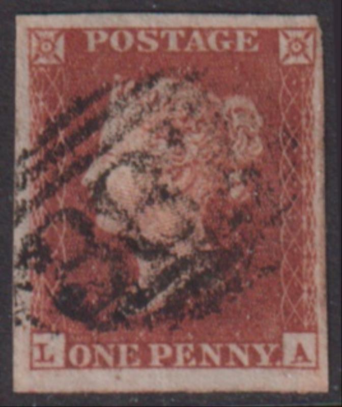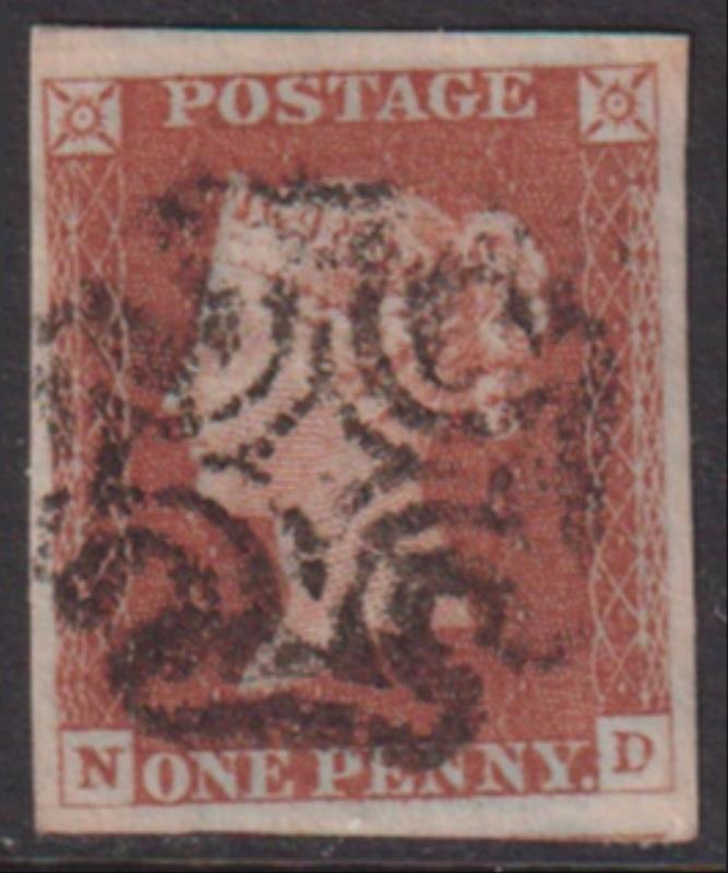 1841 1d red-brown (KK), imperf, almost 4 margins, black MC cancel. SG 8l. Cat £60. FU. (Image)