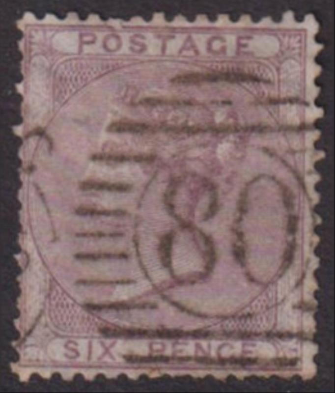 1856 6d lilac, emblems wmk. SG 68. Cat £90. GU. (Image)
