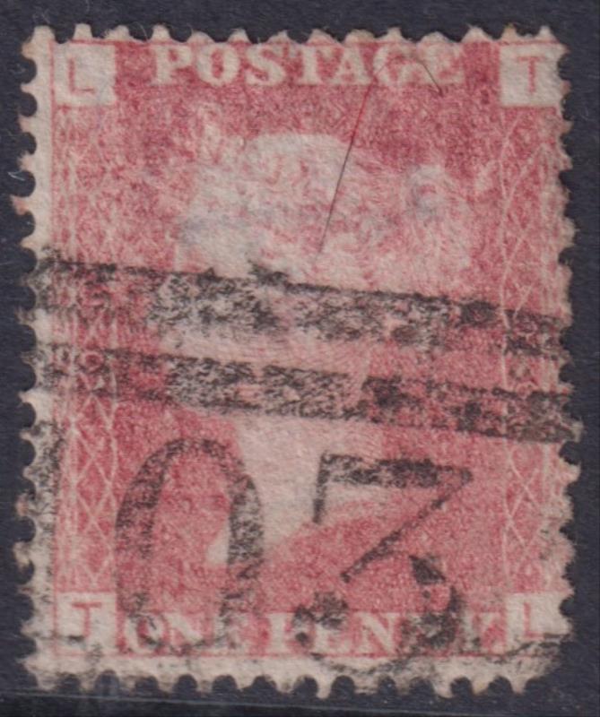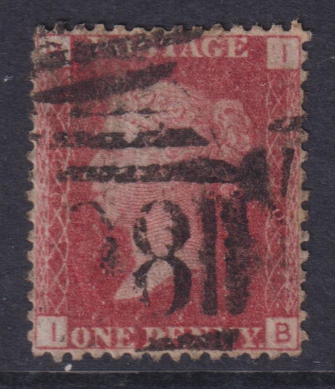 1864-79 1d lake-red, letters in 4 corners, FF/FF, plate 157, variety invtd wmk. SG 44Wi. Cat £40. GU. (Image)