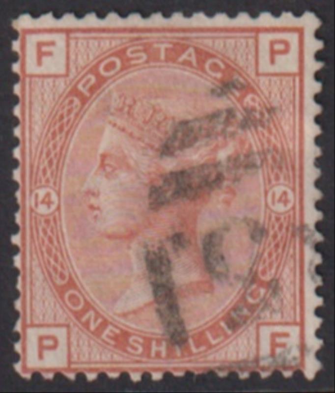 1881 1/- orange-brown, plate 14, crown wmk. SG 163. Cat £80. GU. (Image)