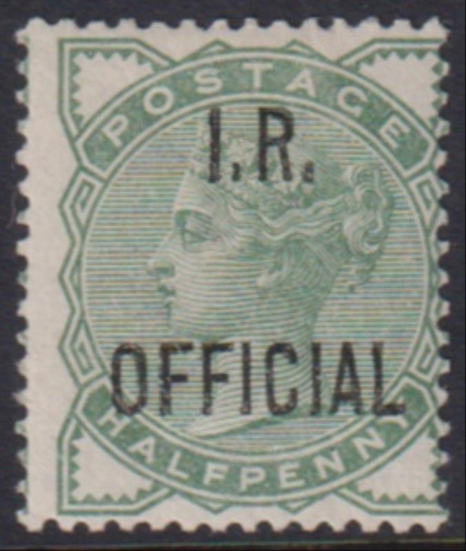 1882 ½d pale green "I.R. OFFICIAL" ovpt. SG O2. Cat £750. Mint. (Image)