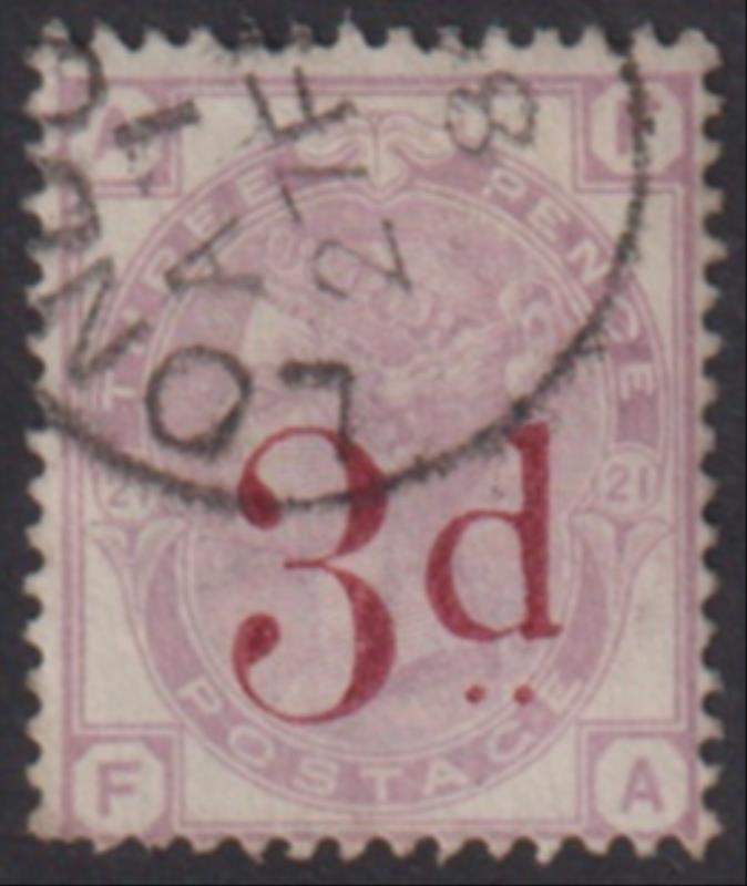 1881 3d rose, crown wmk, plate 21. SG 158. Cat £75. GU.