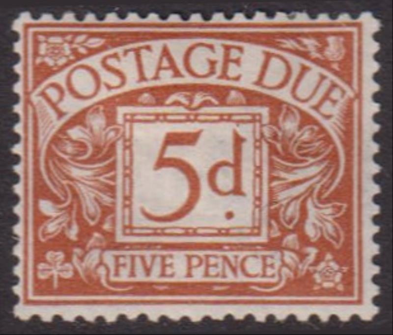1931 5d Postage Due, block cypher, sideways wmk. SG D16. Cat £65. Mint. (Image)