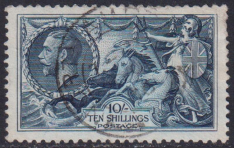 1935 10/- Seahorses, re-engraved. SG 452. Cat £80. VFU. (Image)