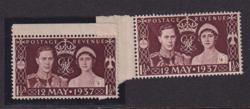 1937 1½d Coronation variety: spur on "A" in "MAY", with normal for comparison. SG Spec Qcom1e. Cat £30. Mint. (Image)