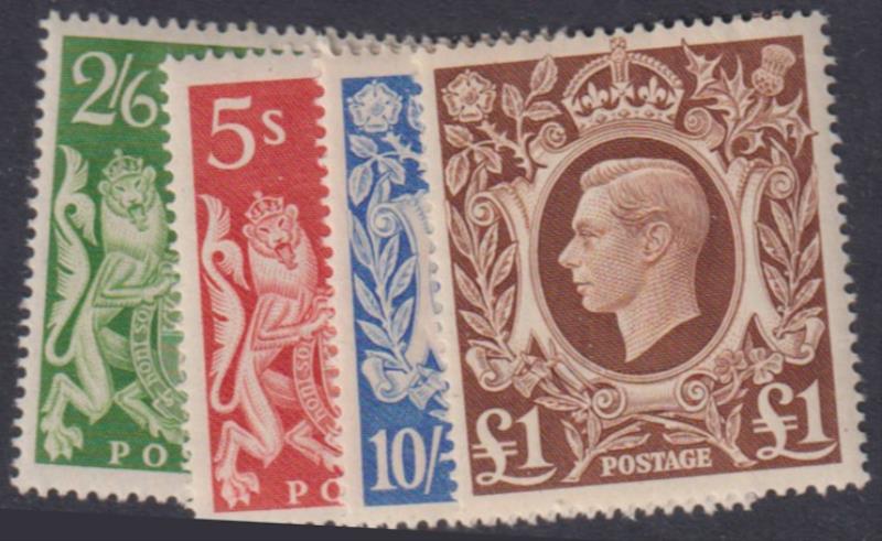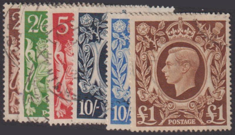 1939-48 2/6d-£1 GVI set (6v). SG 476-478c. Cat £60. GU/FU.