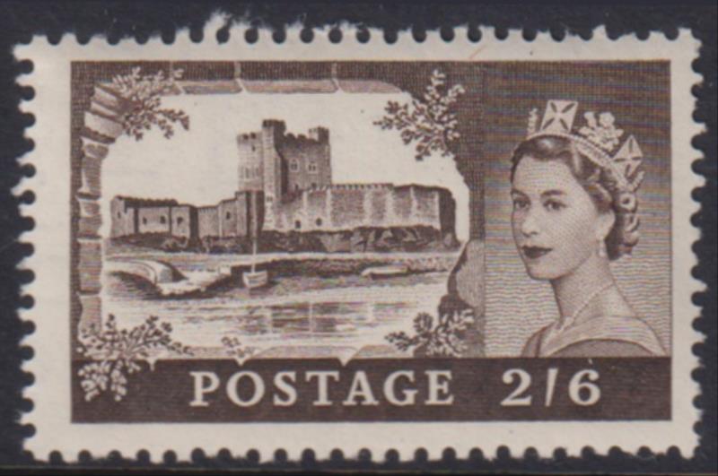 1958 2/6d Castle, DLR printing. SG 536a. Cat £30. MUH. (Image)