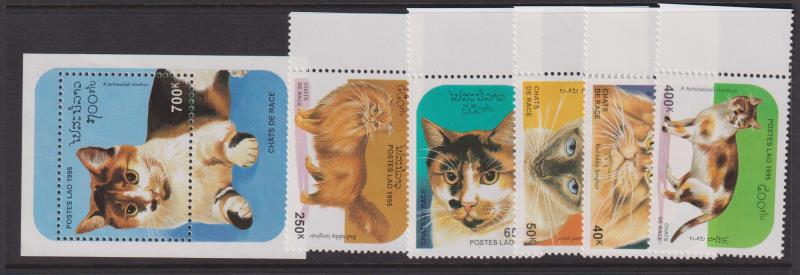 Cats: Laos 1995 set + m/s. SG cat £14+. MUH. (Image)