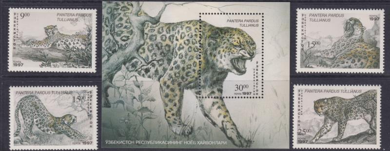 Cats: Uzbekistan 1997 Leopard set & m/s. SG 143-7. MUH. (Image)