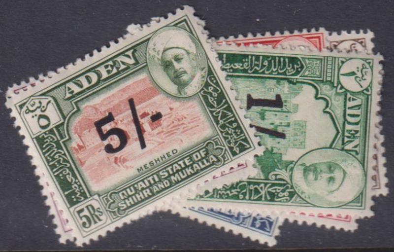 Aden-Qu'aiti State of Shihr & Mukalla 1951 surcharges set. SG 20-27. Cat £38. Mint. (Image)