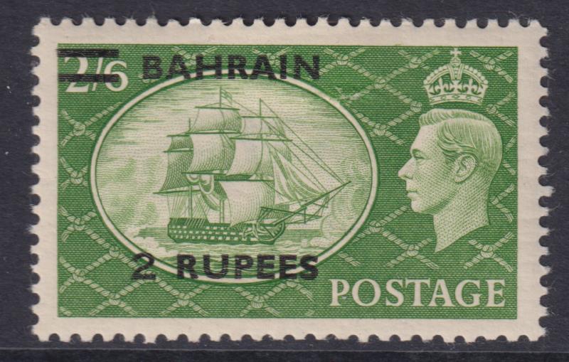 3304 M imageBahrain 1951 2R on 2/6d GVI, type I surcharge. SG 77. Cat £50. Mint. (Image)