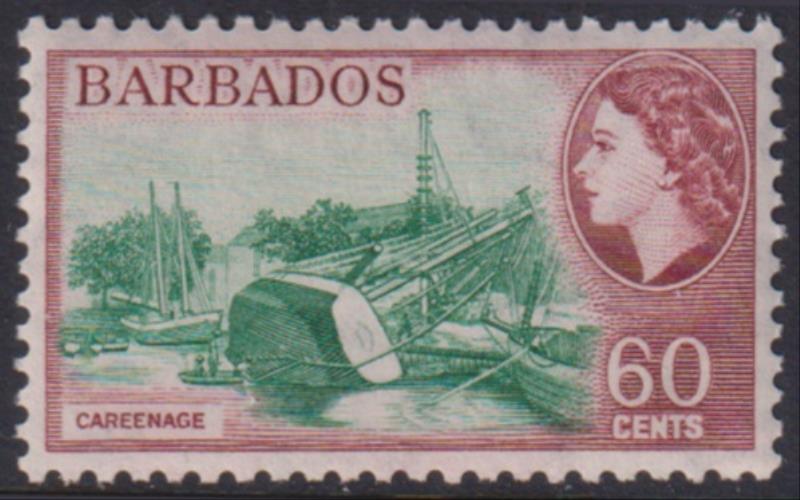 3313 M imageBarbados 1956 60c QEII Careenage, blue-green & brown-purple, p11 x 11½. SG 299. Cat £42. Mint. (Image)
