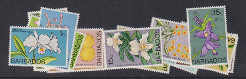 3314 * imageBarbados 1974 Orchids original set of 16, wmk (SG type) w12 (no 20c or 45c). SG 485-500 (no 493b, 495b). Cat £27. MUH. (Image)
