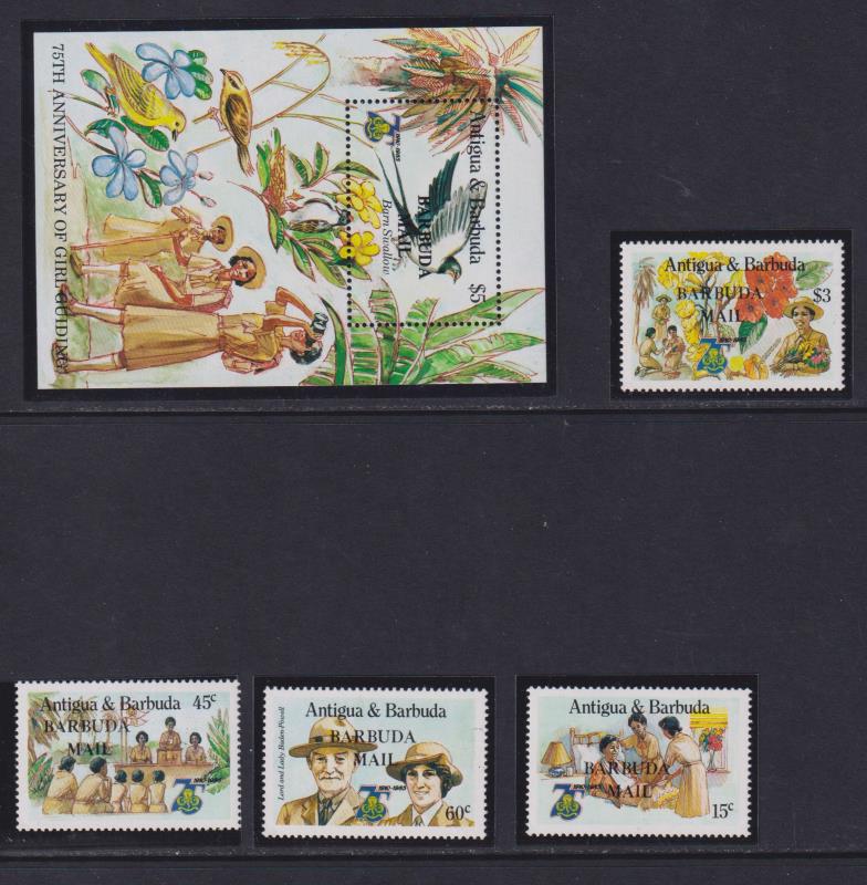 3315 * imageBarbuda 1986 75th Anniv Girl Guides set & m/s. SG 846-50. Cat £51+. MUH. (Image)