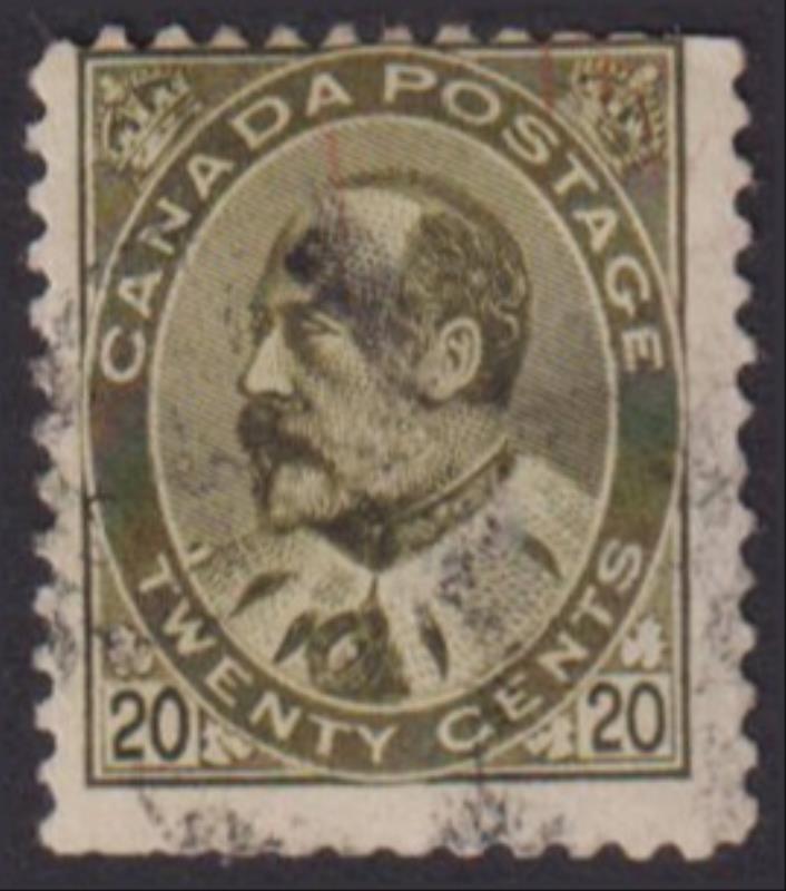 Canada 1904 20c EVII deep olive-green. SG 186. Cat £45. GU. (Image)