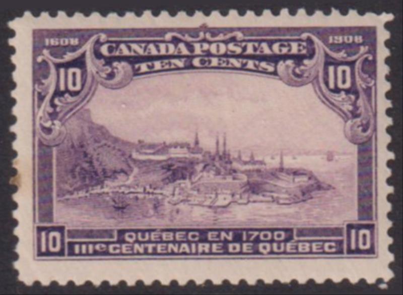 Canada 1908 10c Quebec, 2 perf tones LHS. SG 193. Cat £110. MUH. (Image)