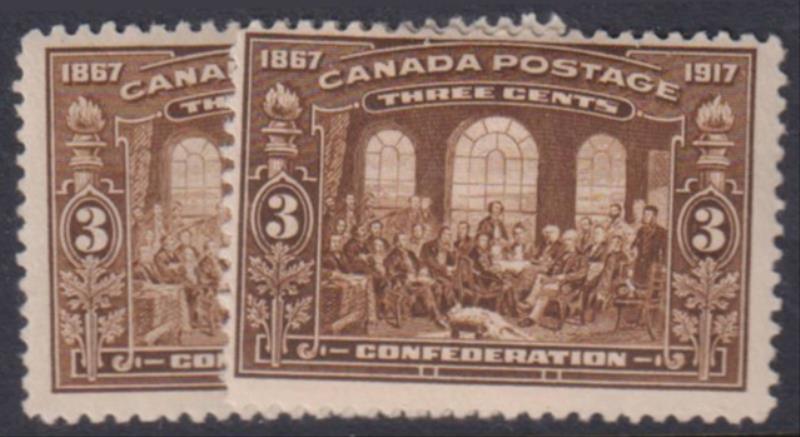 Canada 1917 3c 50th Anniv Confederation in both listed shades. SG 244-5. Cat £55. LH mint. (Image)