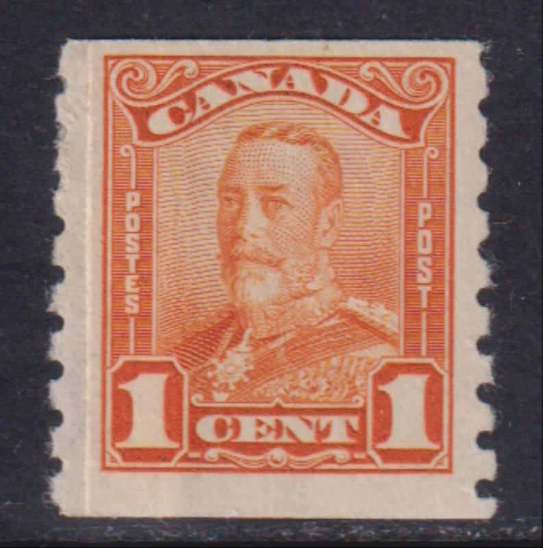 Canada 1928 1c GV imperf x p8, coil join at left. SG 286. Cat £30. Mint. (Image)