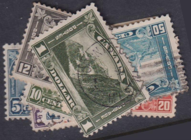 Canada 1928-9 GV scroll series short set to 8c. SG 275-80. Cat £55. GU/FU.