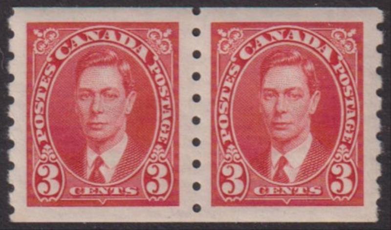 Canada 1937 3c coil horiz pair. SG 370. Cat £70. Mint/MUH. (Image)