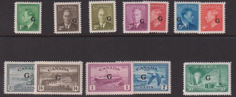 3461 M* imageCanada 1950-52 1c-$1 (no 10c) "G" officials & incl 7c airmail (12v). SG O178 etc. Cat £200+. Mint/MUH. (Image)