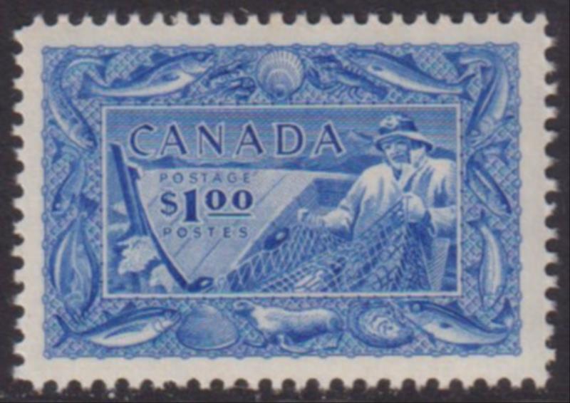 3465 M imageCanada 1951 $1 Fishing Industry ultramarine. SG 433. Cat £35. Mint. (Image)