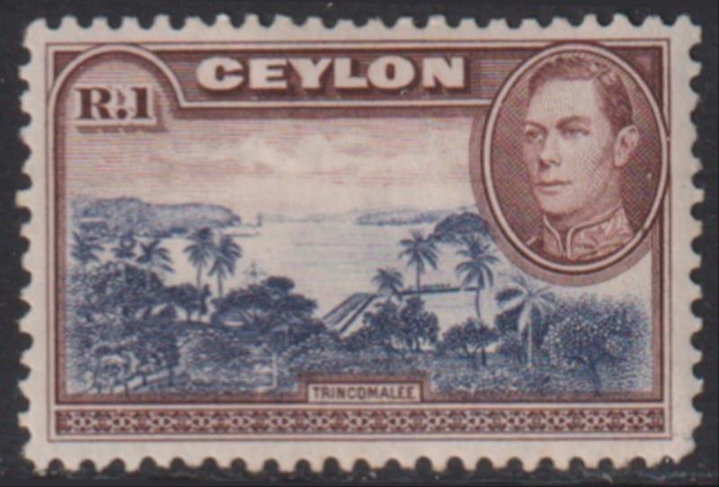 3493 M imageCeylon 1944 1r GVI Trincomalee, upright wmk. SG 395a. Cat £19. Mint. (Image)