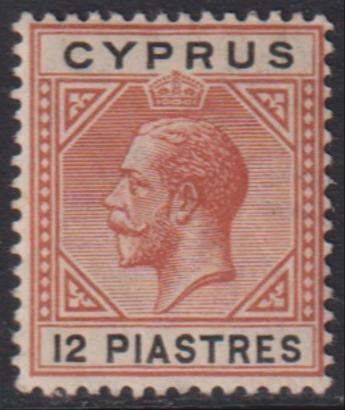 Cyprus 1913 12pi GV chestnut & black, wmk mult crown CA. SG 82. Cat £32. VLH mint. (Image)