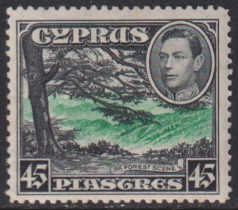 Cyprus 1938 45pi GVI & Forest Scene, Troodos (green & black). SG 161. Cat £55. Mint. (Image)