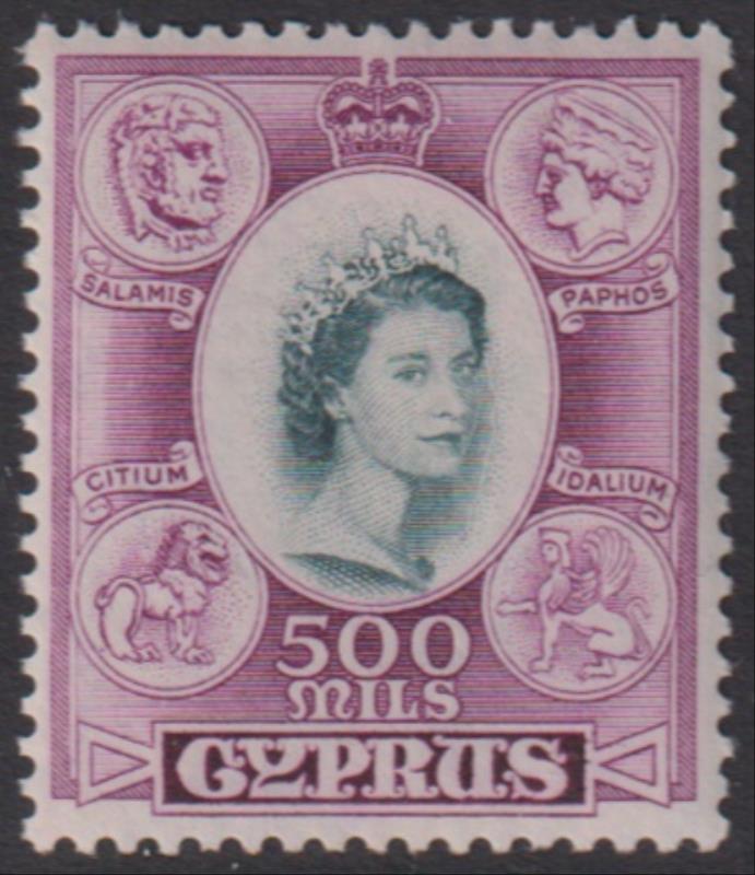 Cyprus 1955 500m QEII. SG 186. Cat £38. Mint. (Image)